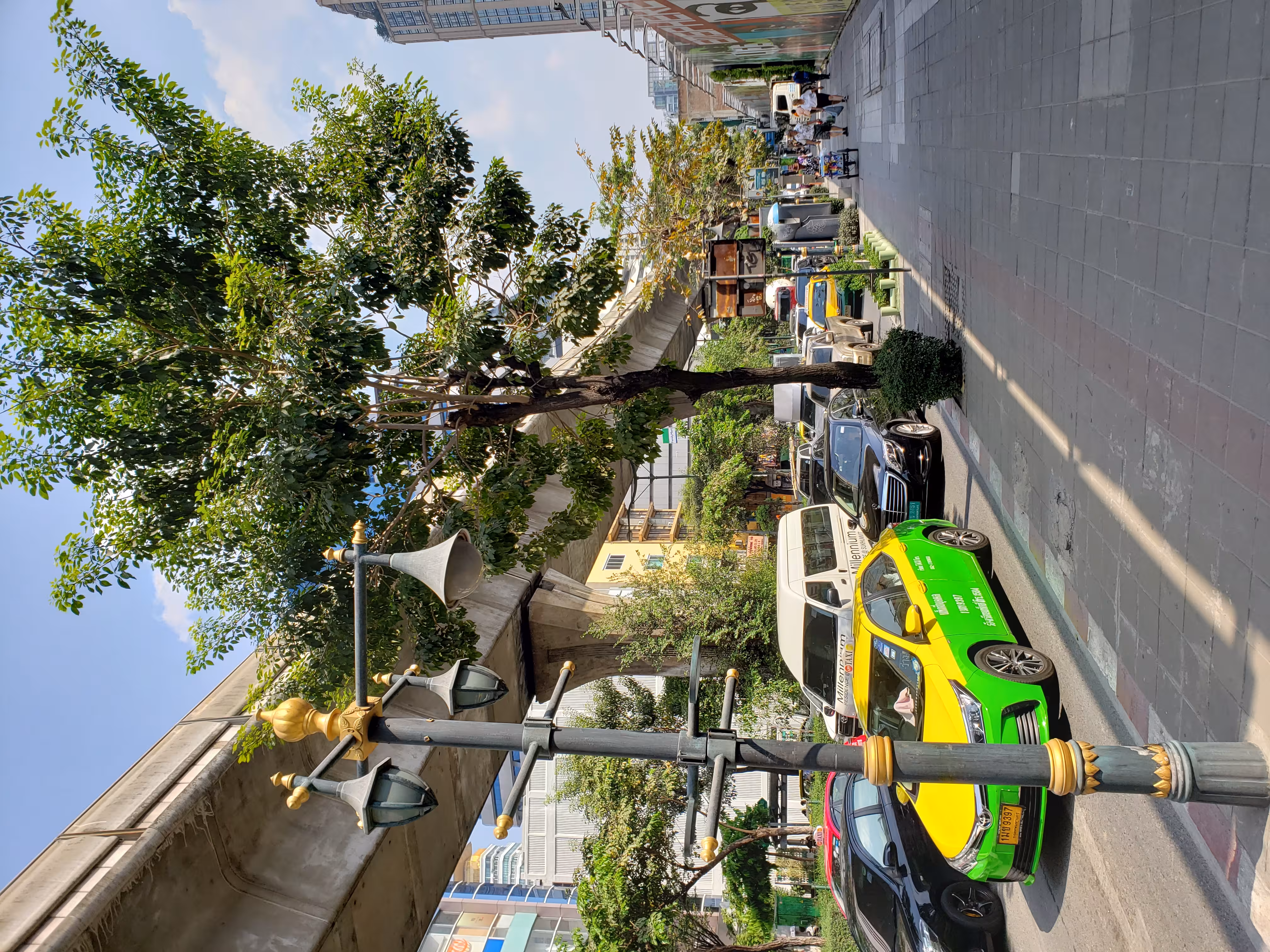 因为想多体验不同的公寓,所以在曼谷我分别订了两间,每间各住两天。第一间是处于闹市区、我们即将入住的网红公寓Park 24,位于Sukhumvit 24 Alley。这条巷子很窄,人行道更窄,拖着行李箱走很痛苦,时不时遇到个电线杆就要走到马路上绕开。马路是一个双向单车道,毫无疑问的堵。