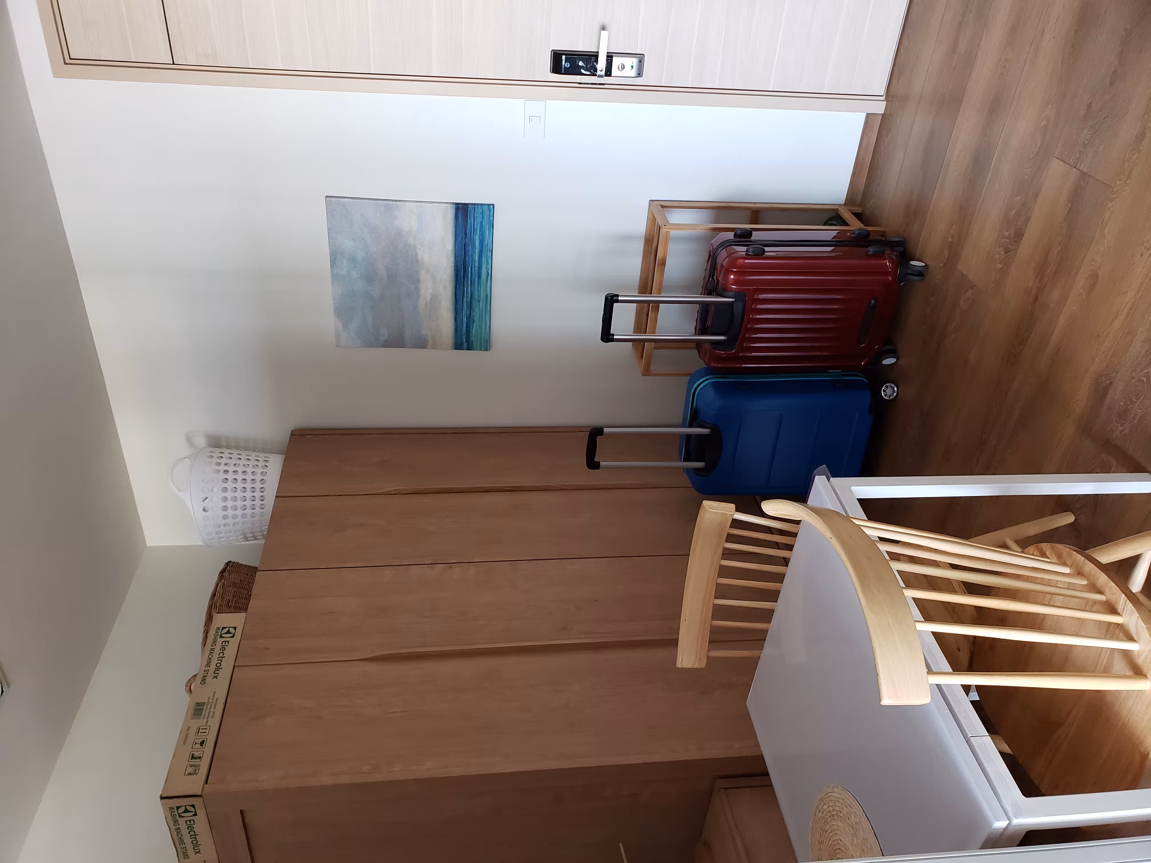 我们住五楼,房间就是典型的公寓户型,麻雀虽小五脏俱全。另外这边的公寓也是精装修还配家电,家电全是大品牌,比国内房东自己配的品质要好不少。