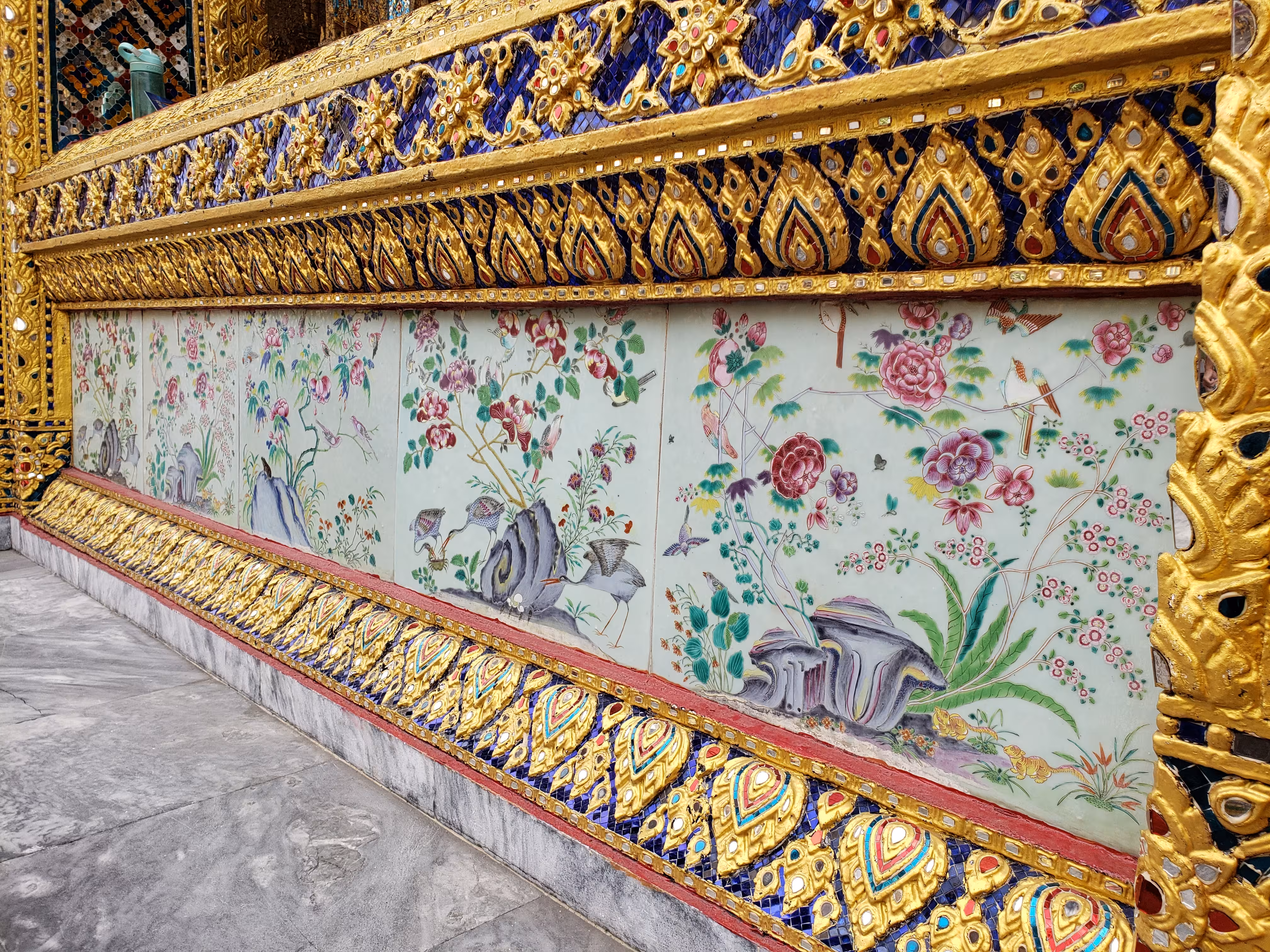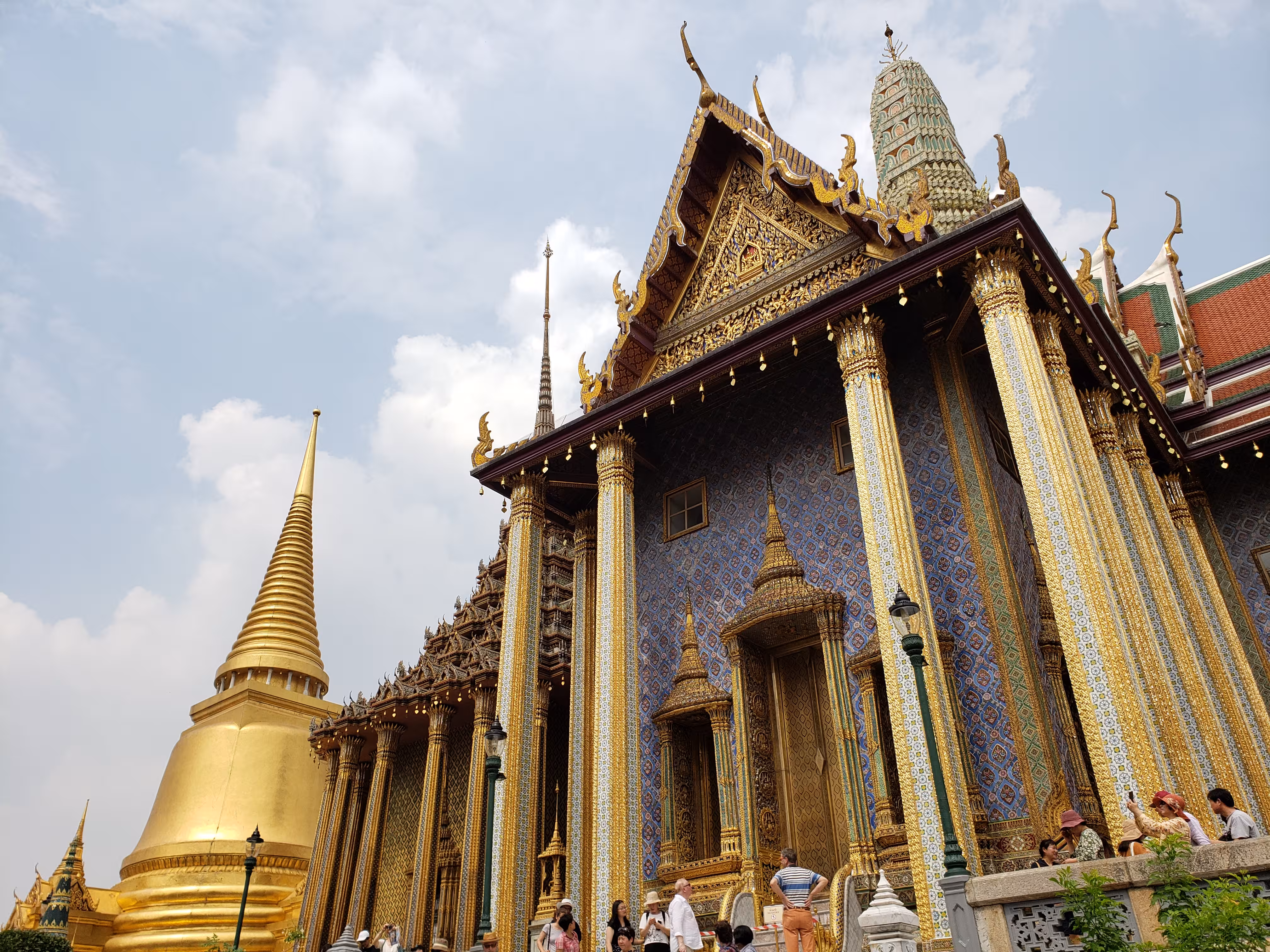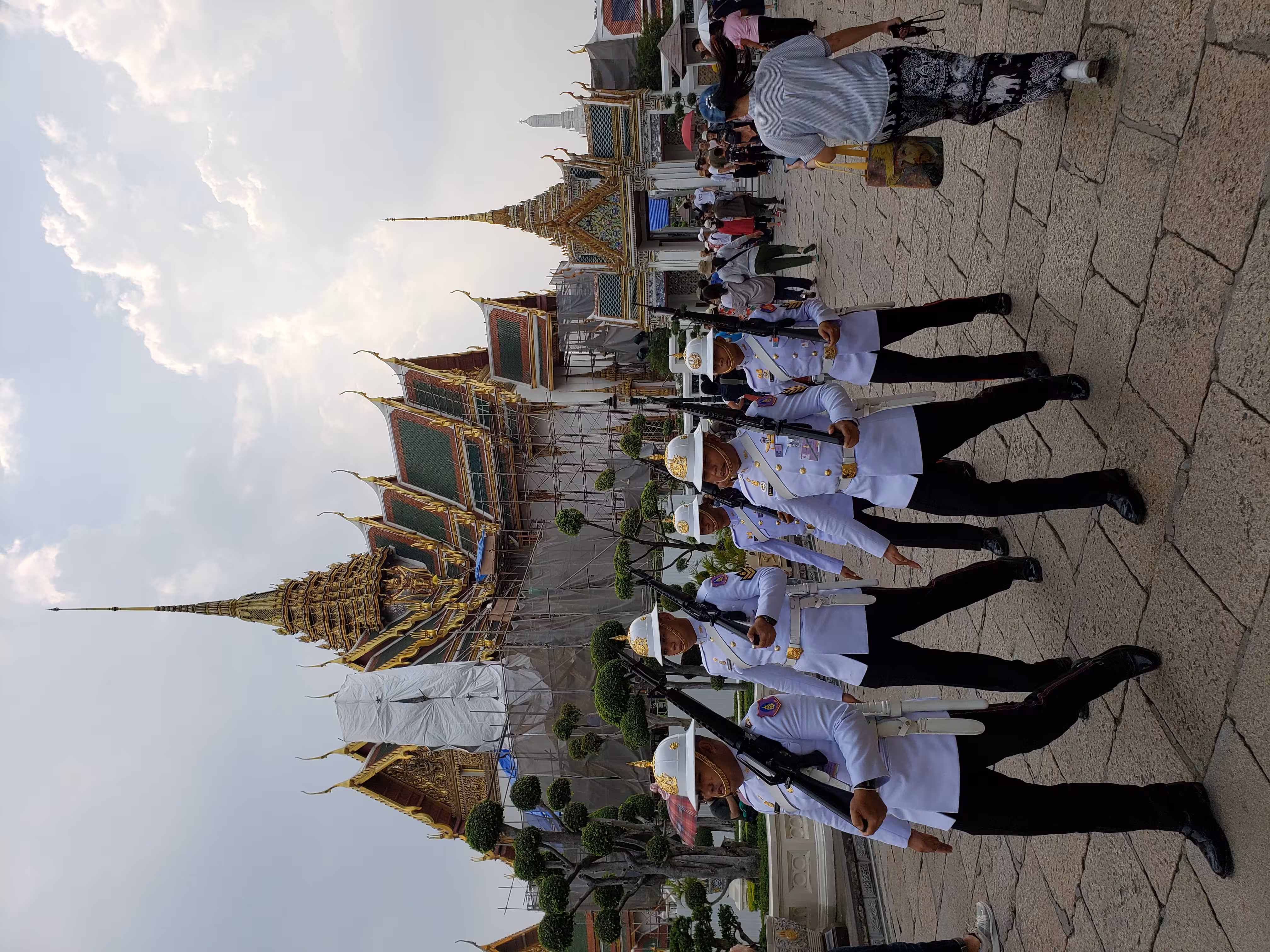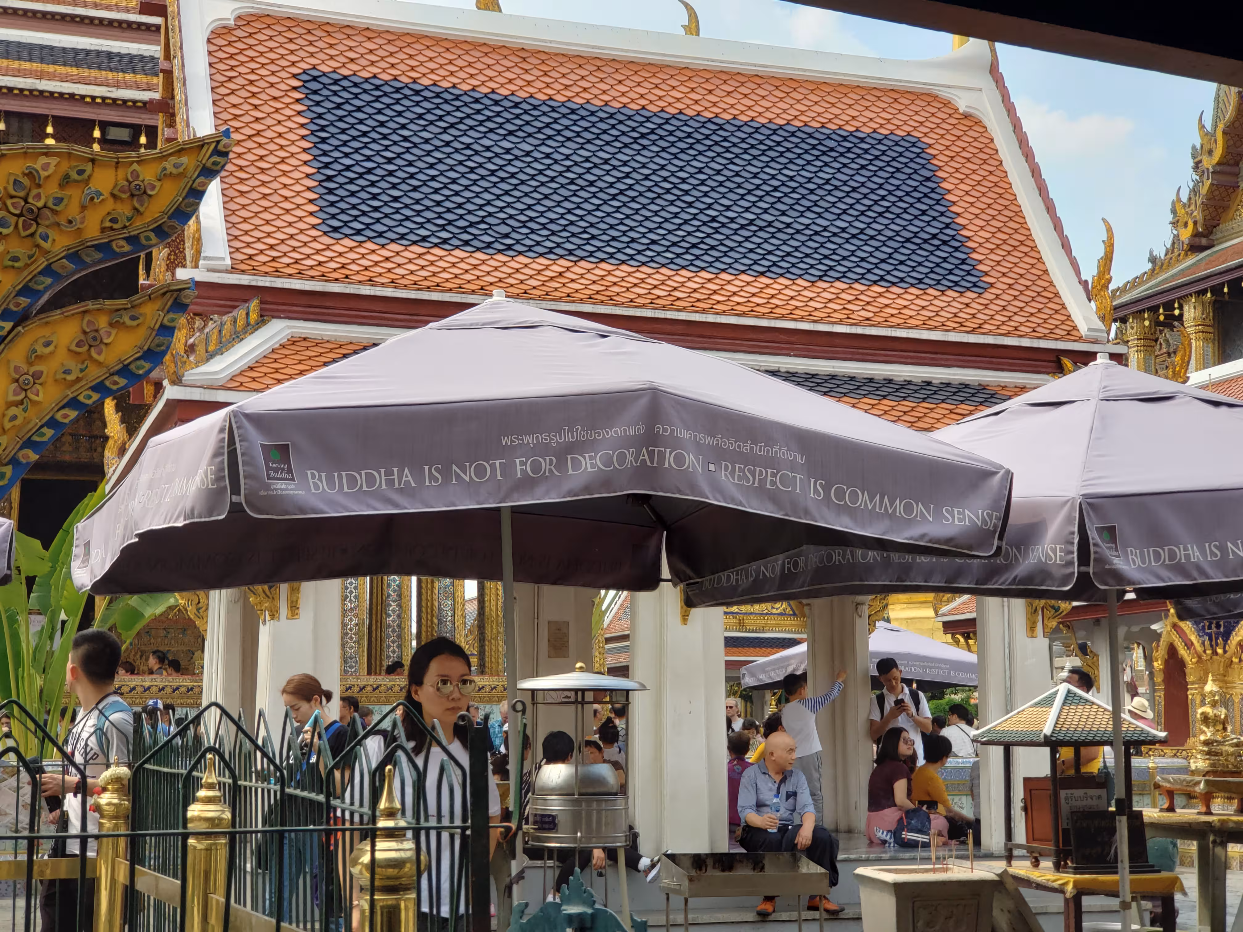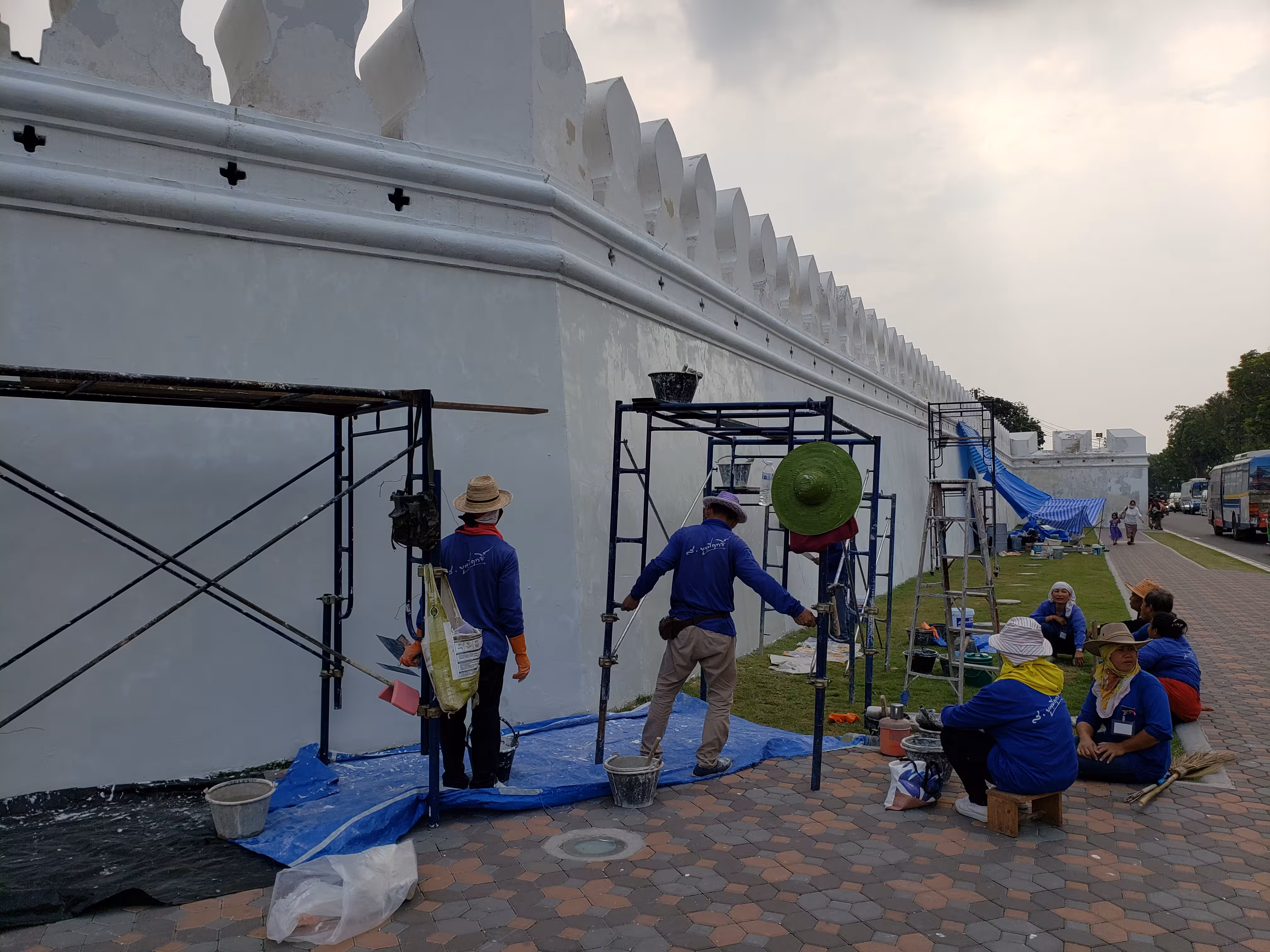 虽说是说好价后司机应该不会绕路,我还是下意识打开Google Maps时不时看看路线。一路上比较通畅,大概半小时抵达大皇宫附近,明显感受到了汹涌的人潮。我们一开始没找到入口在哪,先沿着宫殿围墙走了几分钟。