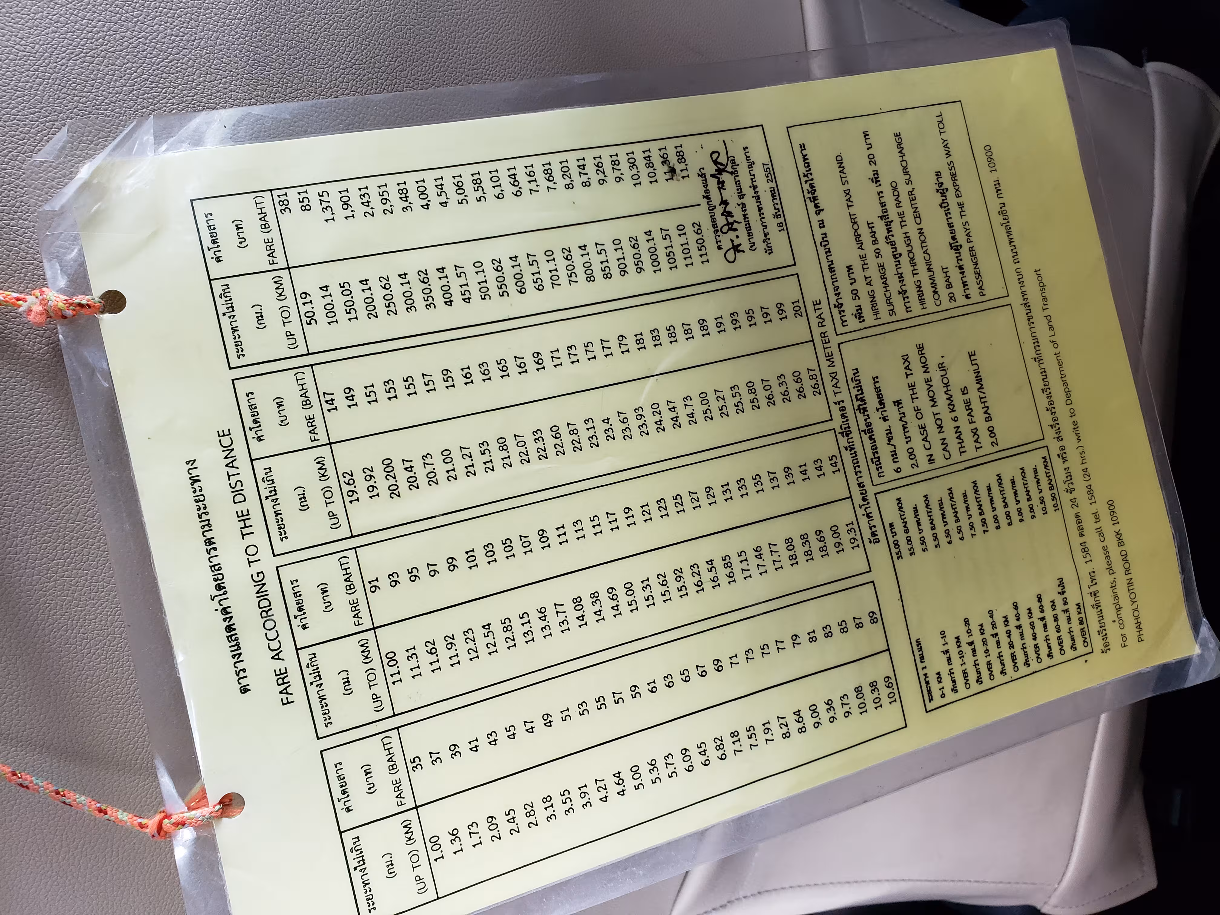 在国内养成的防宰习惯,拦下出租车后首先问司机多少钱,老头开头就说三百块,和Grab上报价180相去甚远,我直接说太贵了不坐,他立马改口两百。这算是一个能接受的价格,也省得再等,招呼M上车出发。在后排居然看到出租车的价目表就挂在这… 好家伙,这些司机真是能宰一个是一个啊,反正那么多中国游客人傻钱多,价目表就是个摆设不怕人看。