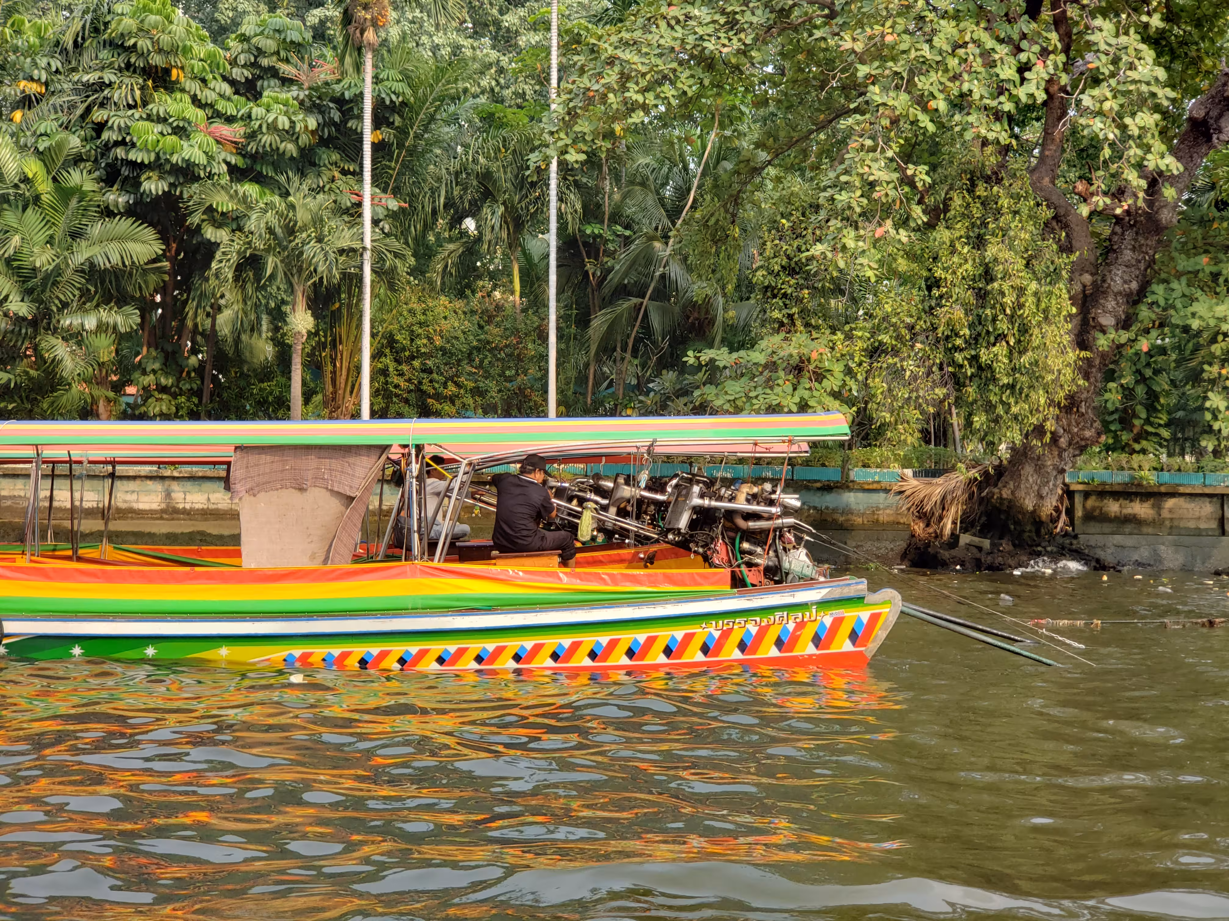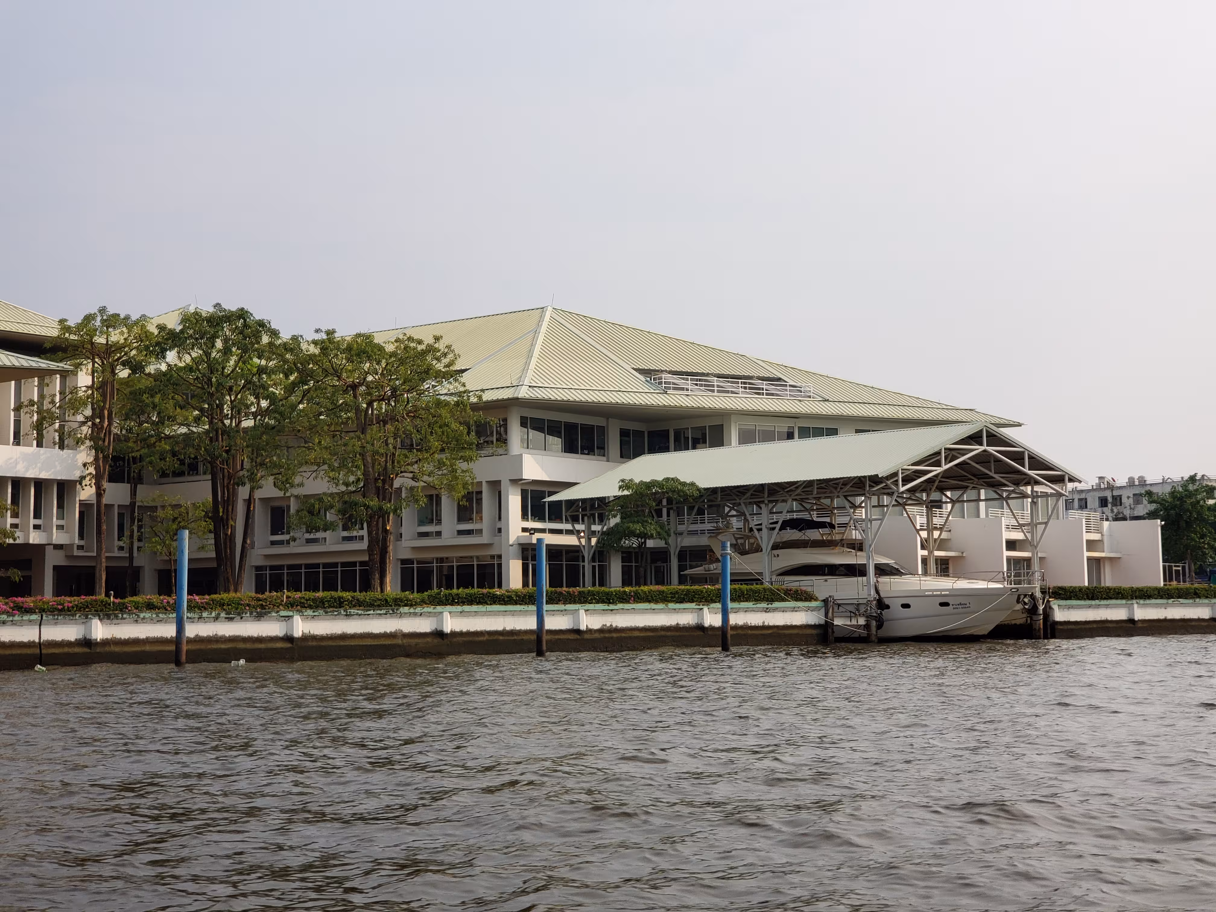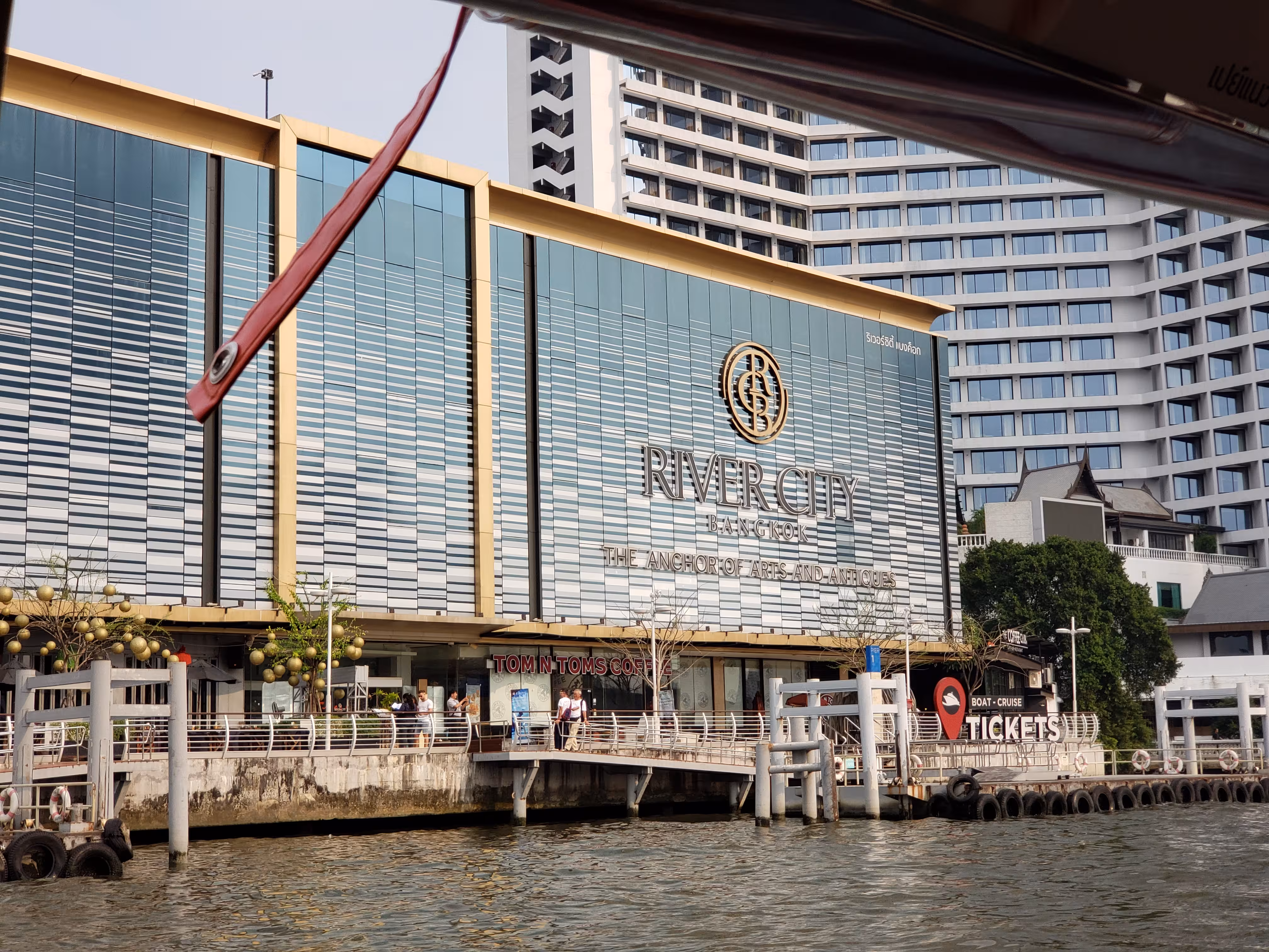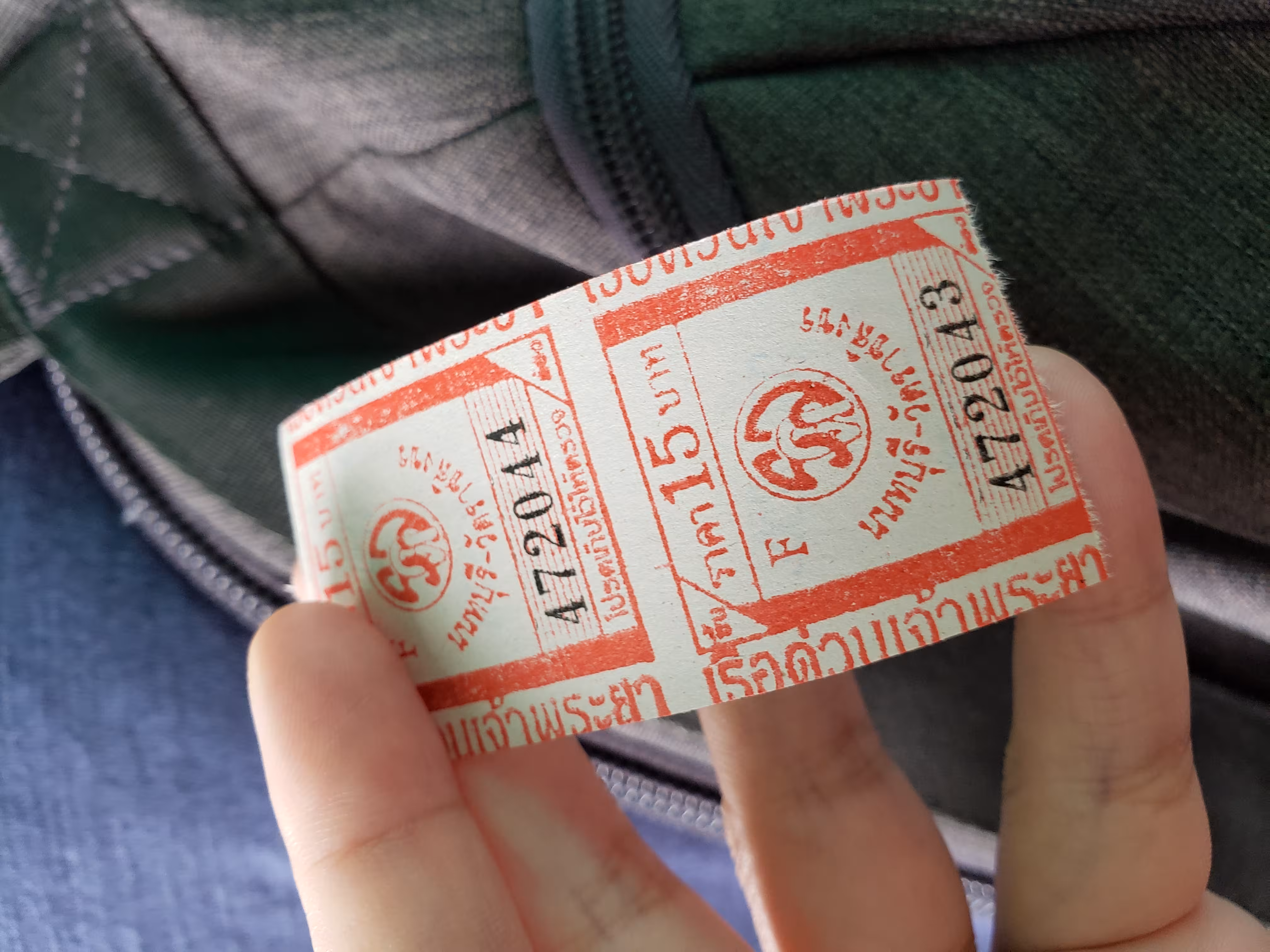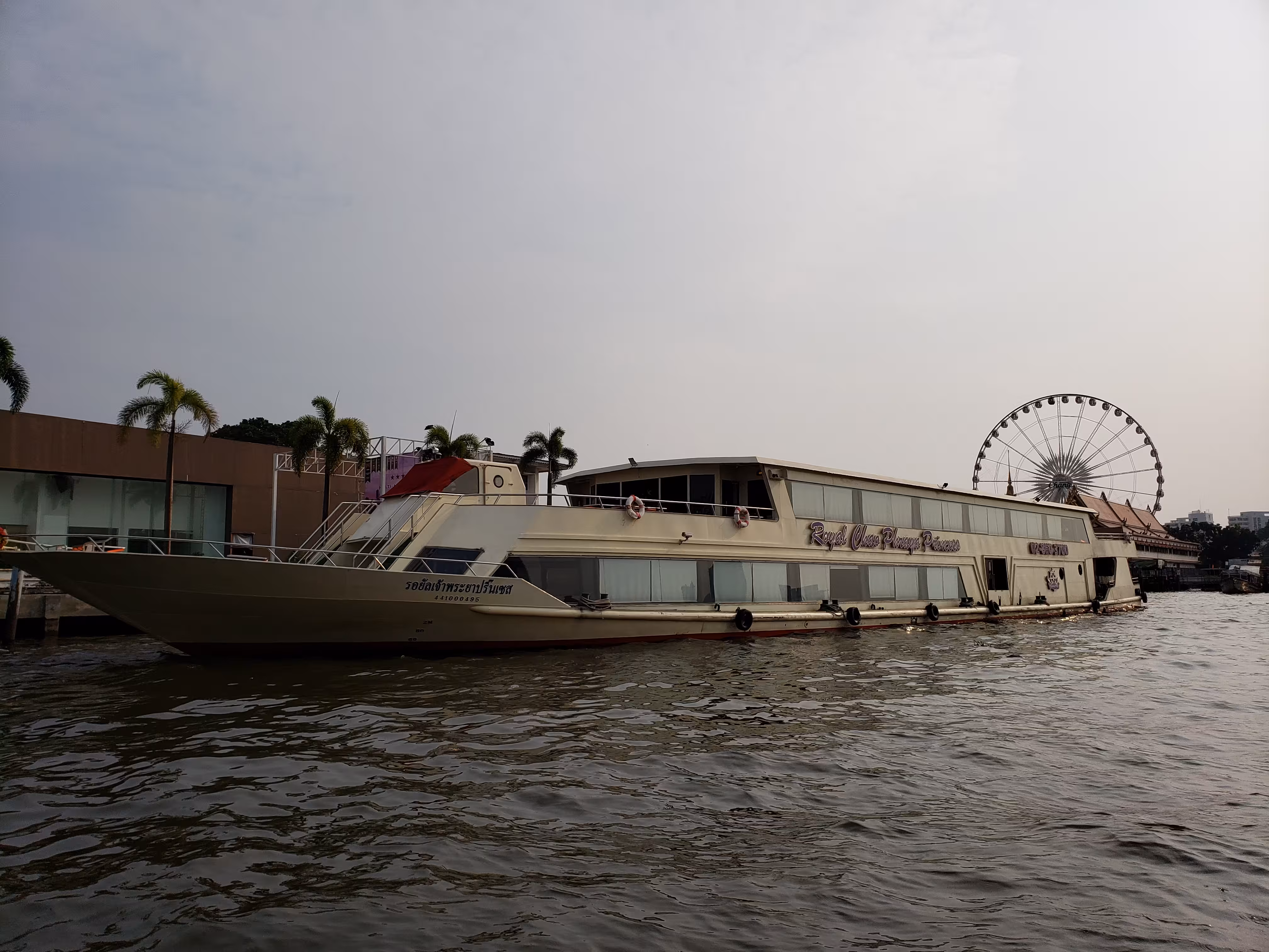 吃完歇到三点,我们来隔壁的码头坐船,欣赏一下湄南河的风景。对着地图确认好我们要乘坐的线路和对应的游船类型,买票后排队等待船来。船票价格和武汉的轮渡差不多,码头岸边的柴油味有点重。