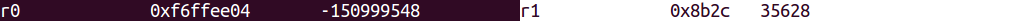 si執行到 0x87ee ,可以看到r0和r1的值:![]()