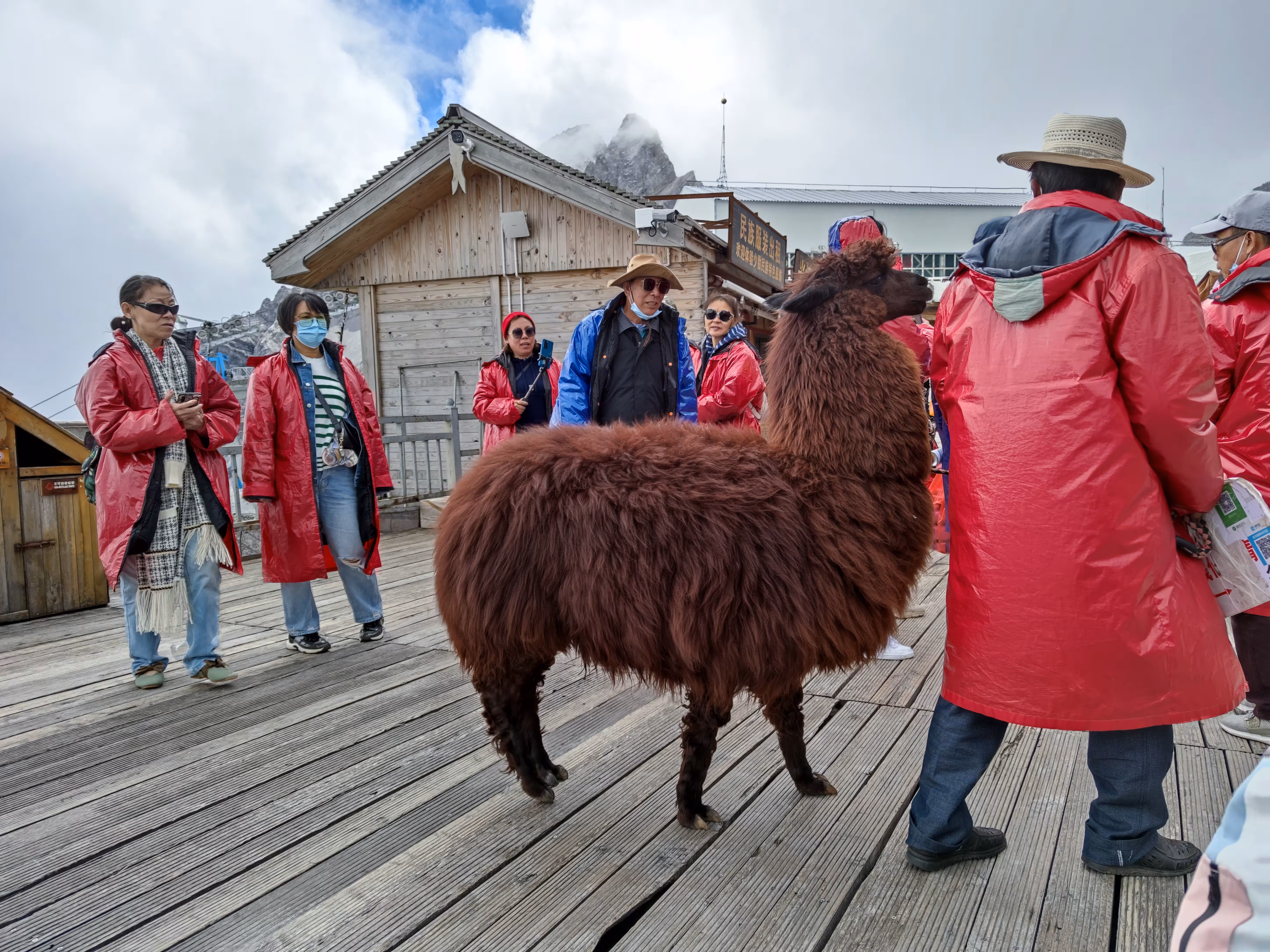 居然还有商家运了只羊驼上来搞创收,有点离谱。然而大爷大妈们似乎对它很感兴趣。