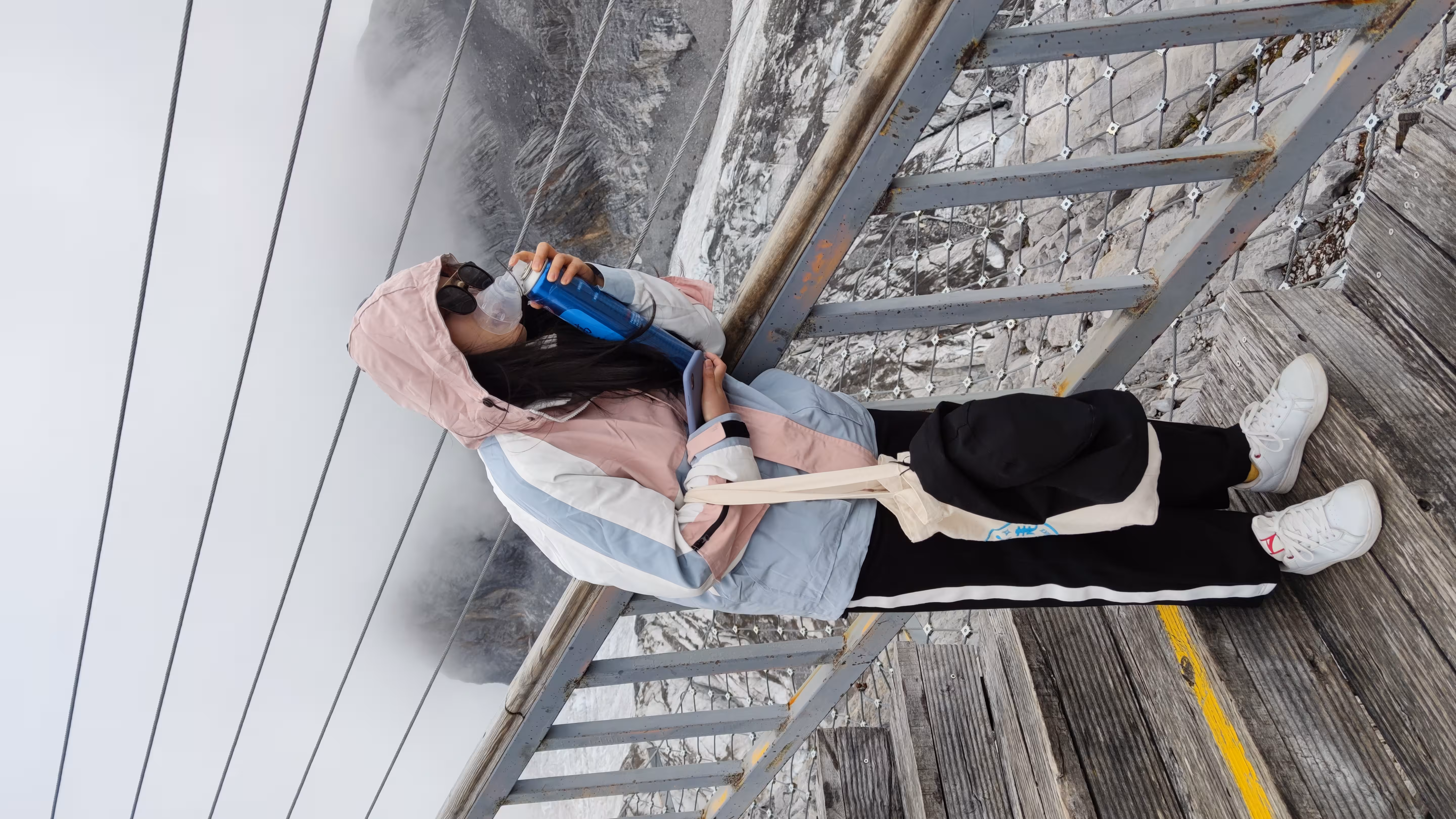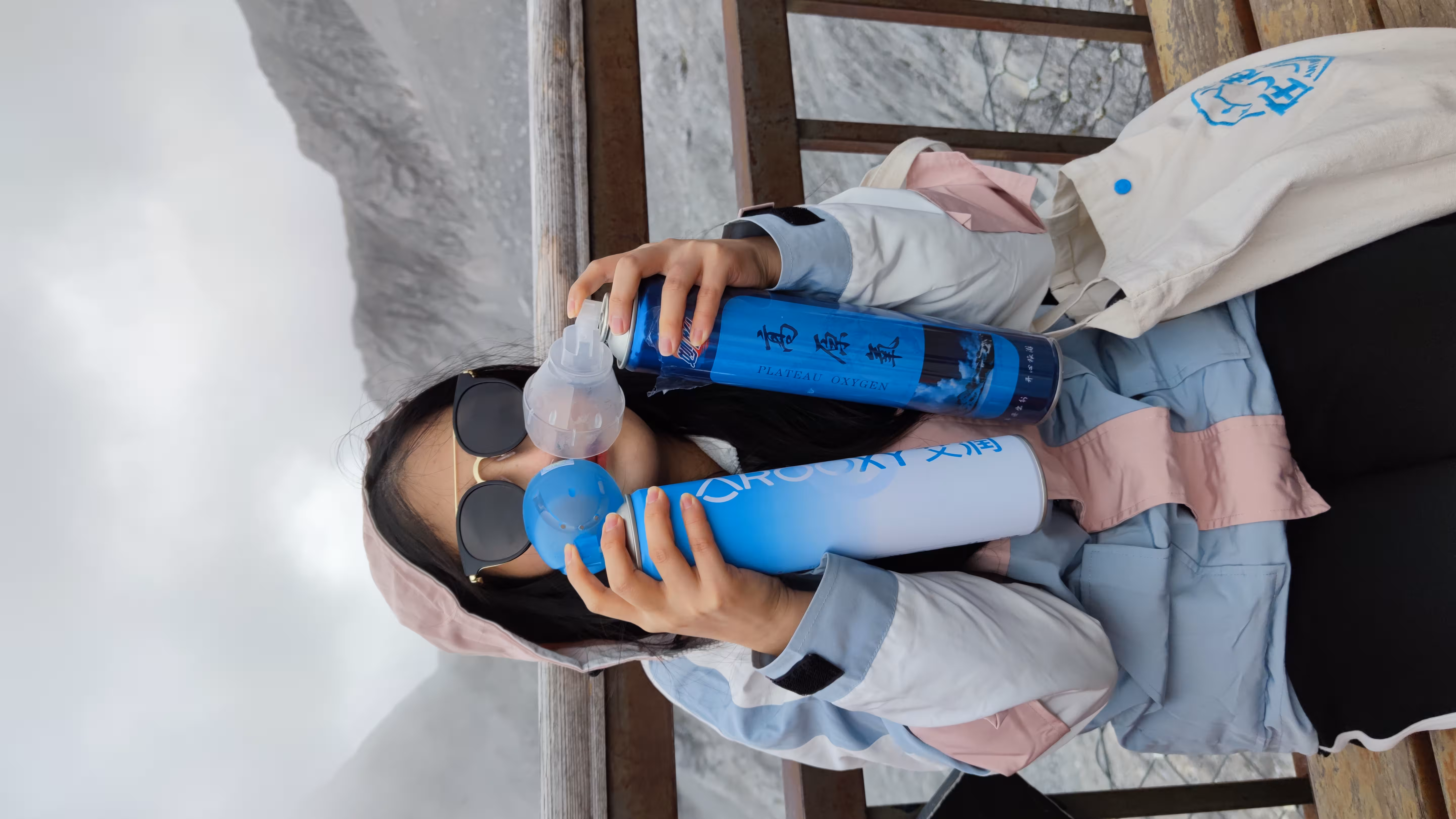 我们在4506米平台上晃了一圈,吃掉昨天在大理买的鲜花饼和自助早餐薅的酸奶后,做了一个明智的决定——买瓶氧气罐再上栈道。最终这瓶氧气罐支撑着某位朋友上到终点,按照她的理论,身体好的人高反会更加严重,而我这种身体差加上长期过度疲劳的人,受到的影响会小很多🙄。