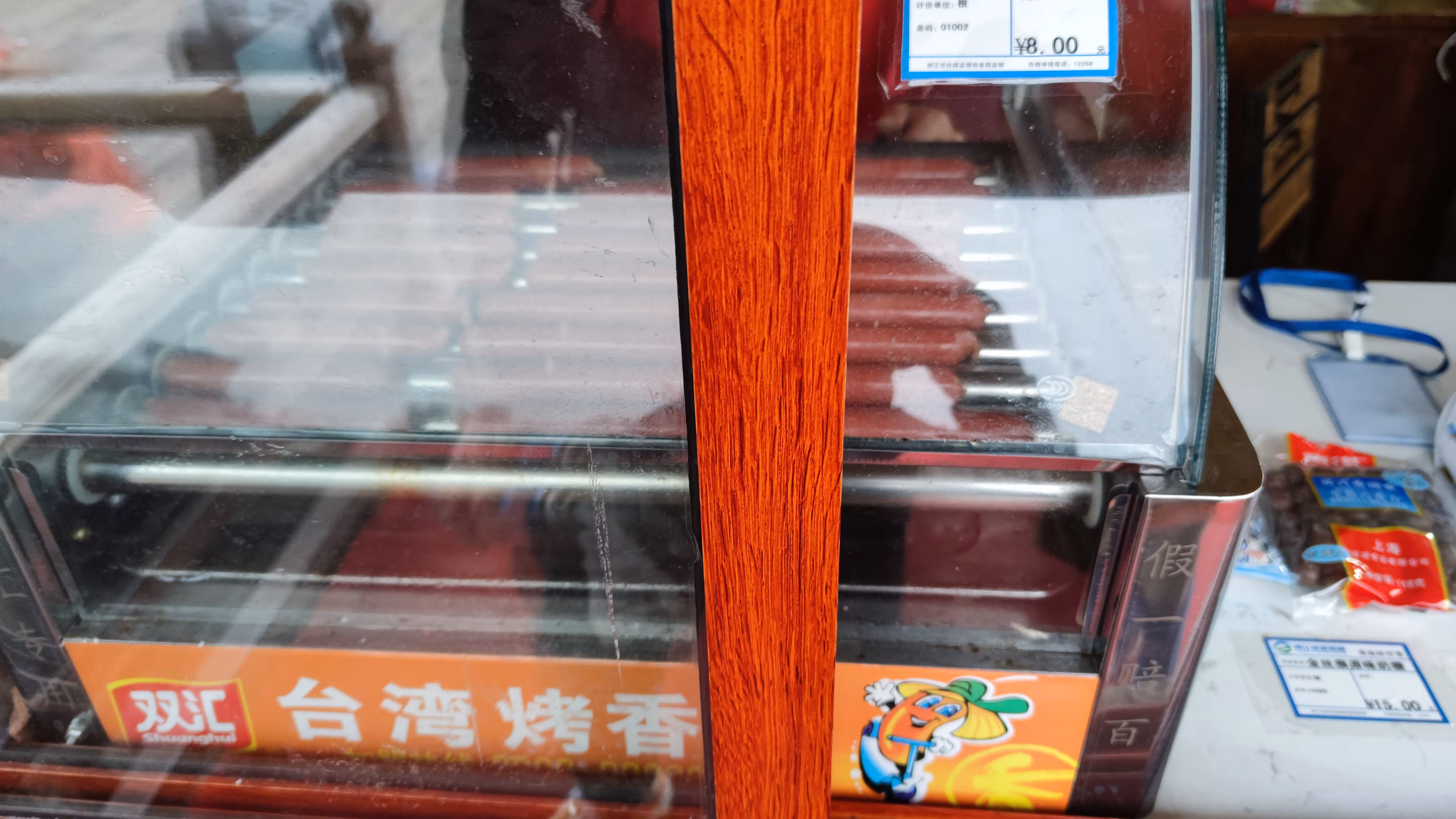 下山前来根全国各大旅游景点的知名美食——台湾烤肠补充体力。
