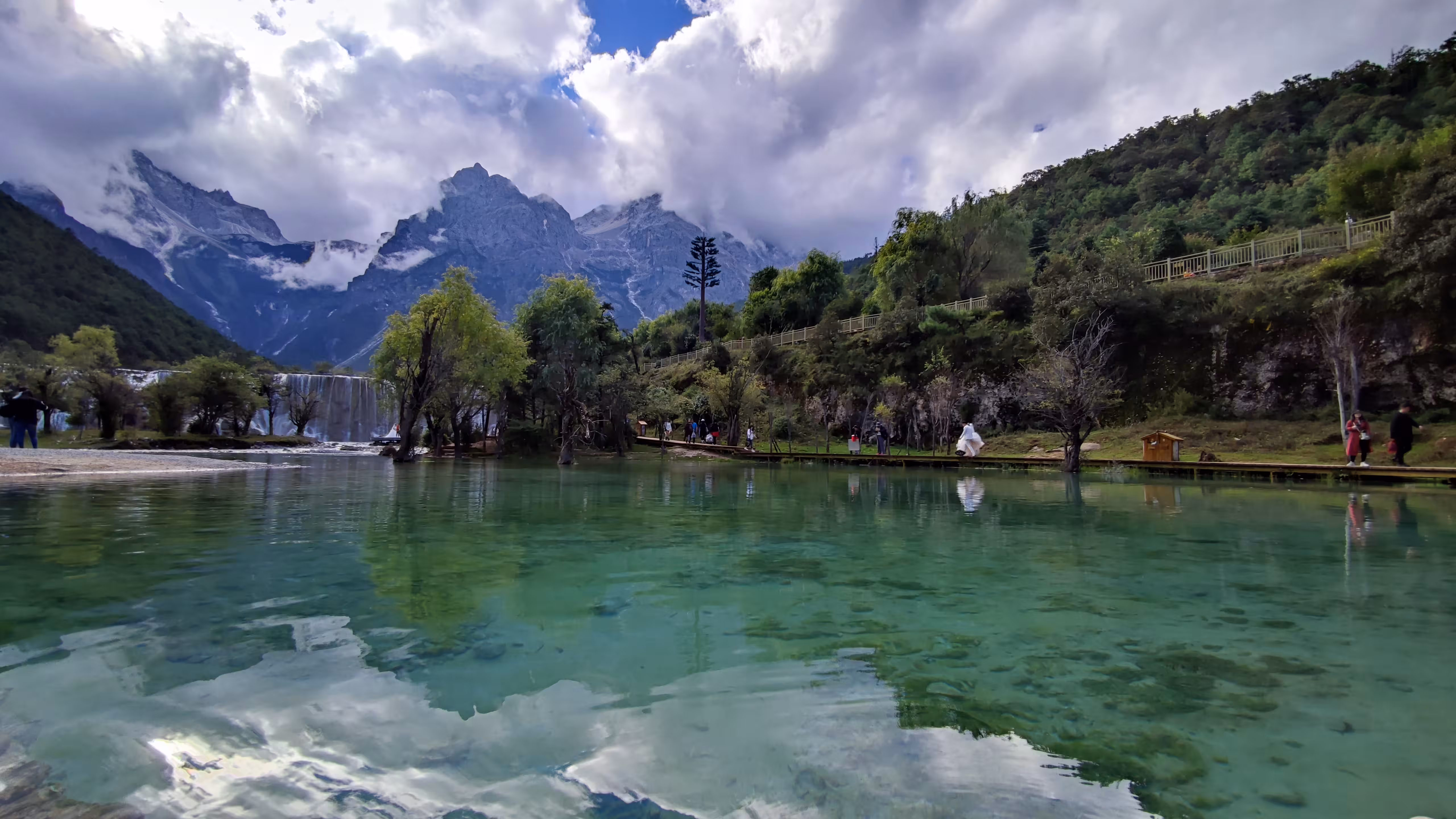 走完玉龙雪山,下一站是同样大名鼎鼎的蓝月湖。看到第一眼就被折服,好美!