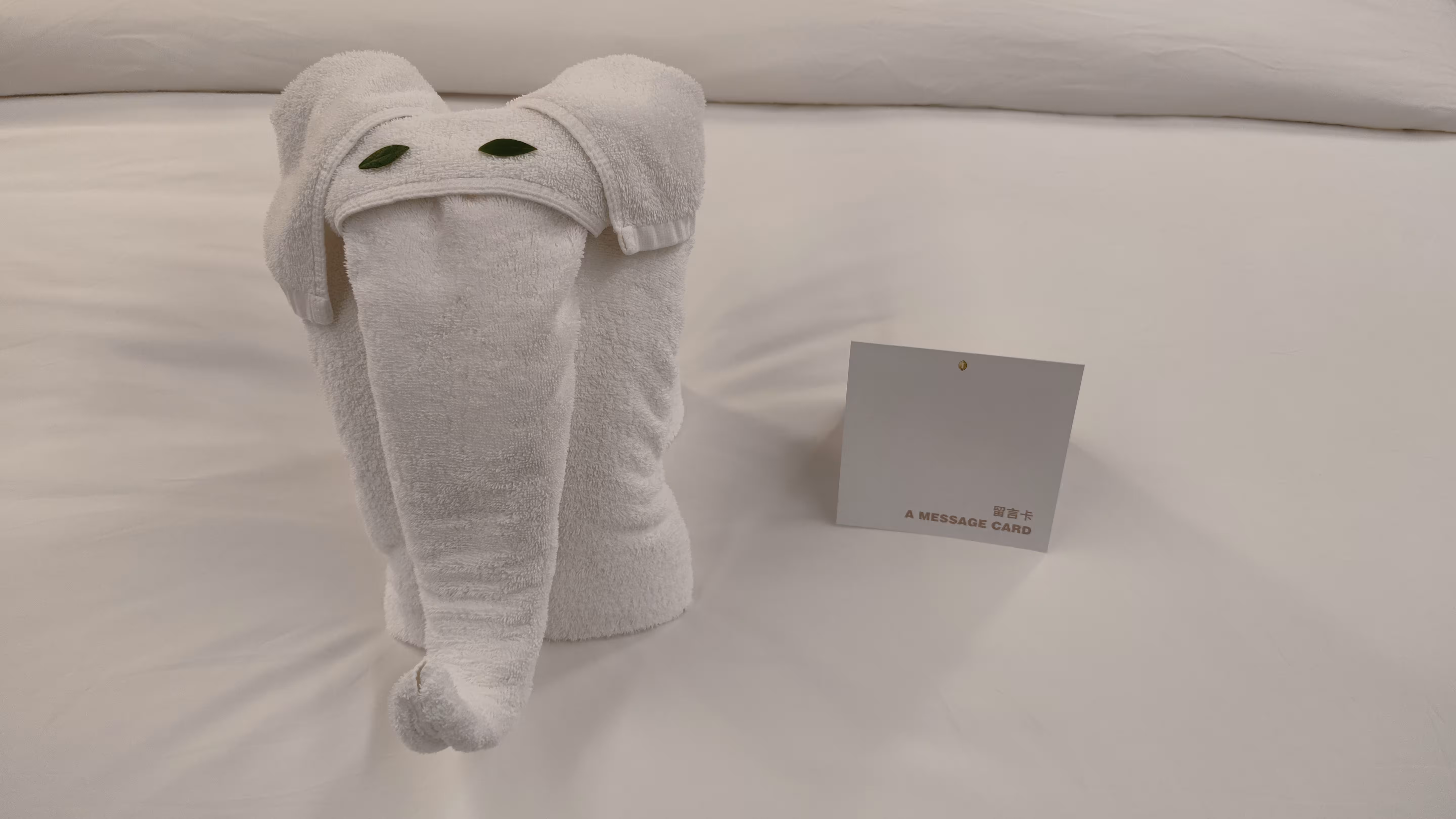 今天整理房间的服务员小姐姐给折了一只小象,有点丑萌哈哈。