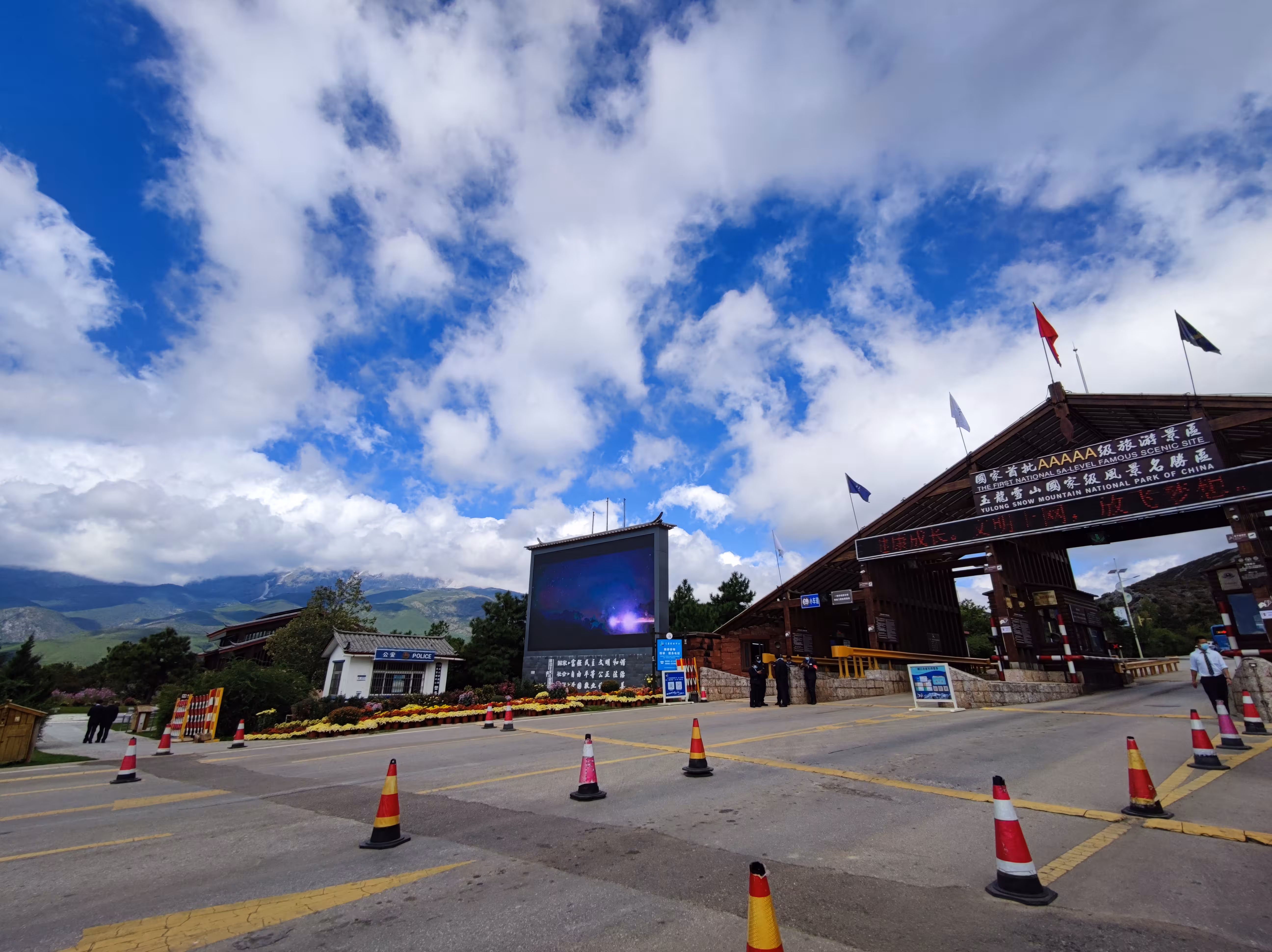 半小时出头,我们便到了雪山景区入口。除了套餐里包含的玉龙雪山门票,需要额外付一笔主景区门票费,网上也称为进山费,80块一个人。