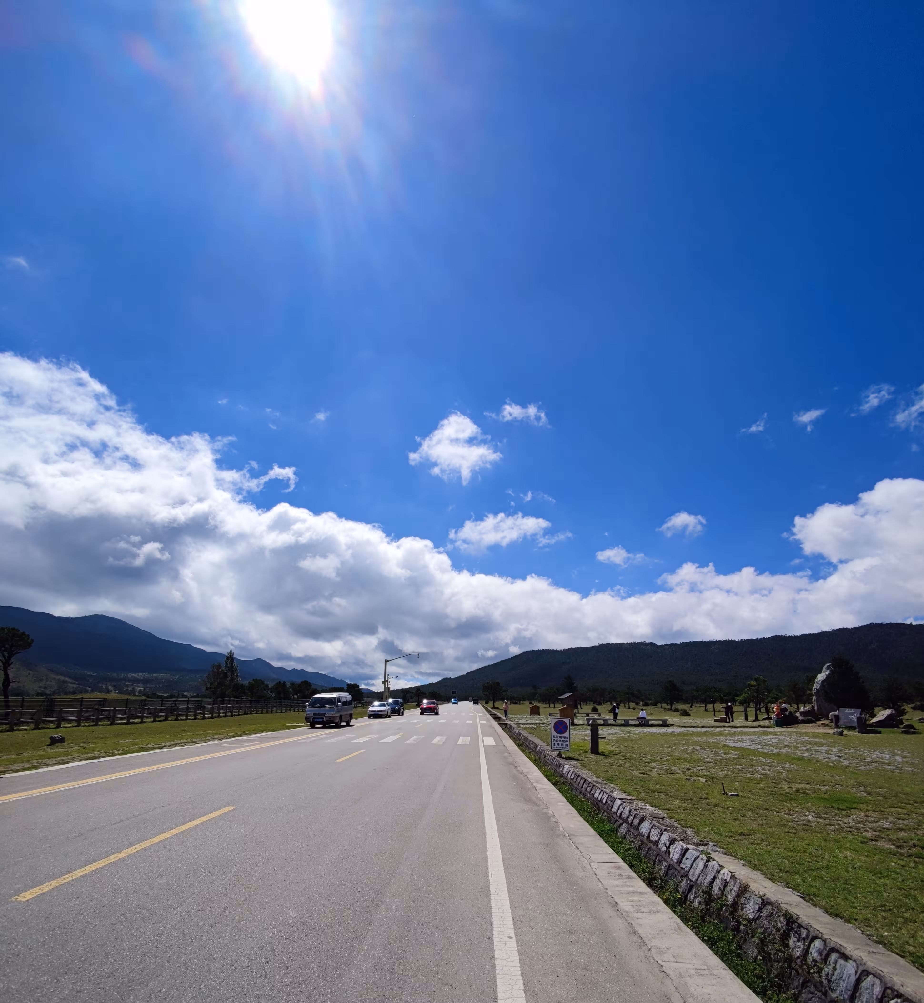 进入景区大门之后,实际还有一段路程才到停车场,沿路已经开始有人停车拍照。